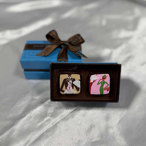 かわいい色使いのアートガナッシュは、ひと粒ひと粒絵柄ごとにフレーバーが違い、見た目も楽しめるチョコレートです。