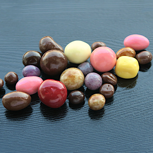 ホロカリっとキャラメリゼしたマカダミアを各々ミルクチョコ、ホワイトチョコ、ストロベリーチョコでコーティングしました